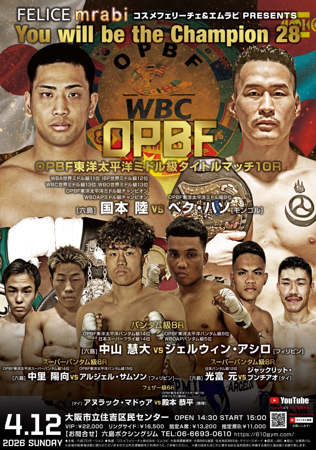 バンタム級8R 中山慧大(六島ジム) VS ジェルウィン・アシロ(フィリピン)